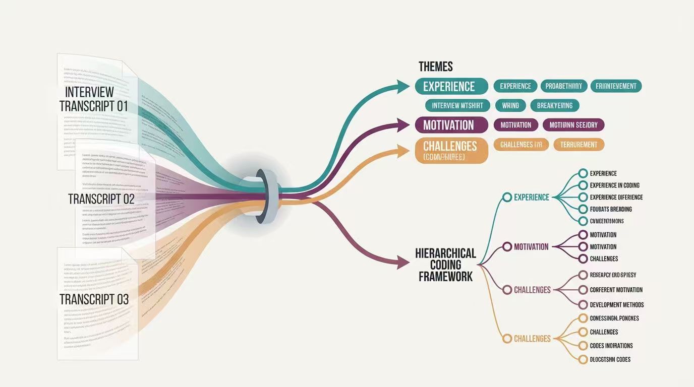 Qualitative research generates rich, nuanced data—but analyzing it is notoriously labor-intensive. A typical interview study involves transcribing hours of audio, reading and re-reading transcripts, developing coding frameworks, and systematically applying codes across hundreds of pages [1].